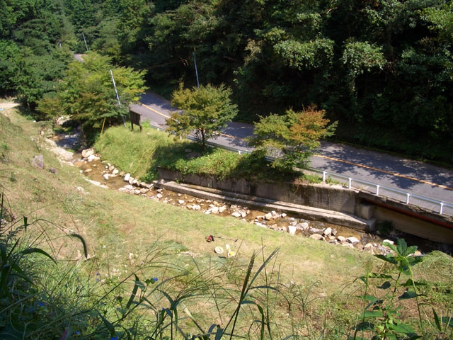 道は車道の手前を流れる沢に沿って左折していく。