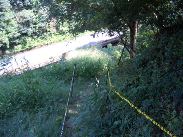 が付けられ、10数段下りさらに30段ほど登るとゆるやかに下りだす。