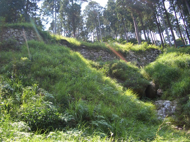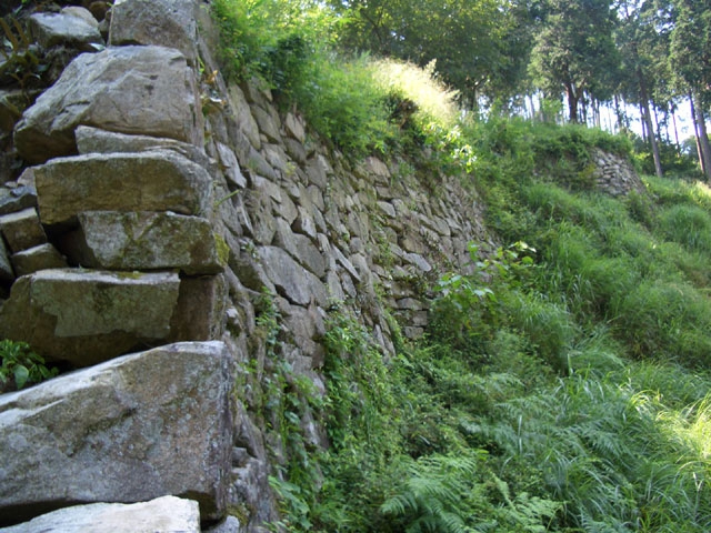 すぐ、左手に林が開け、見事な石垣が目に付く。