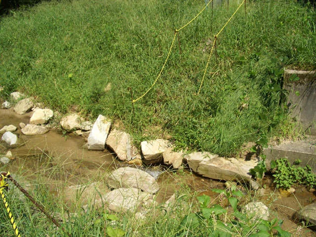 岩の下から水の流れ