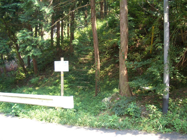 車道を左手へ2〜30メートル下ると、右手に北石垣への木段が登っているが、草が生え踏み跡は薄い。