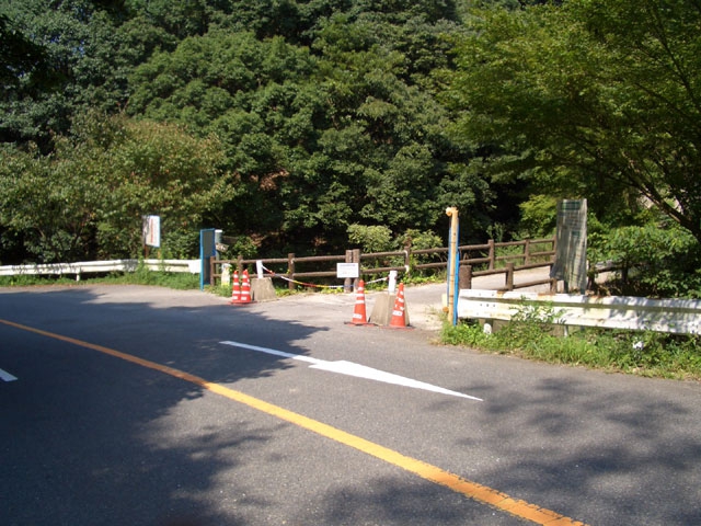 左手に平成16年度事業で造られたコンクリートの堰を見てさらに車道を行く。
