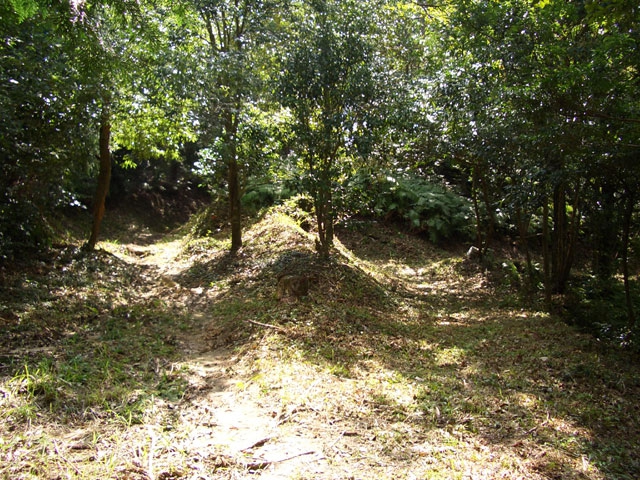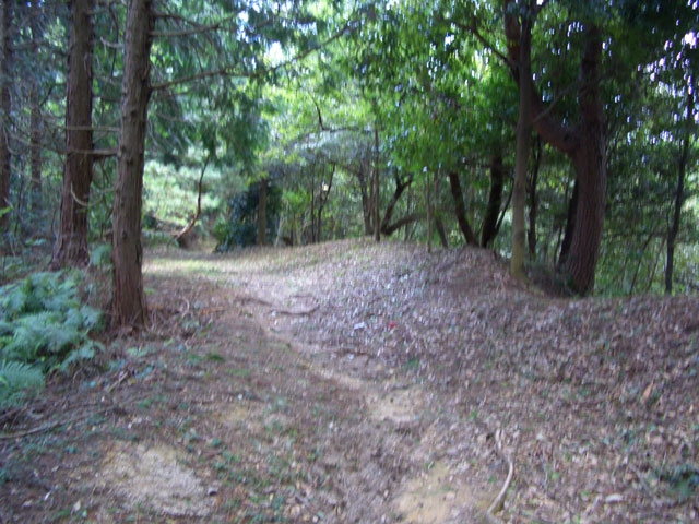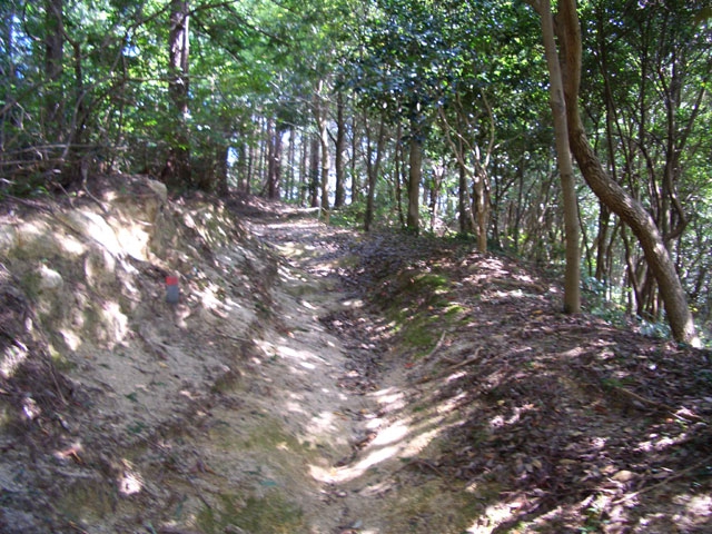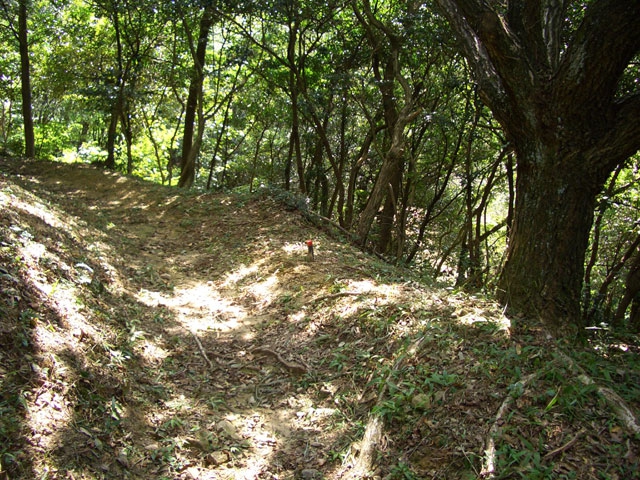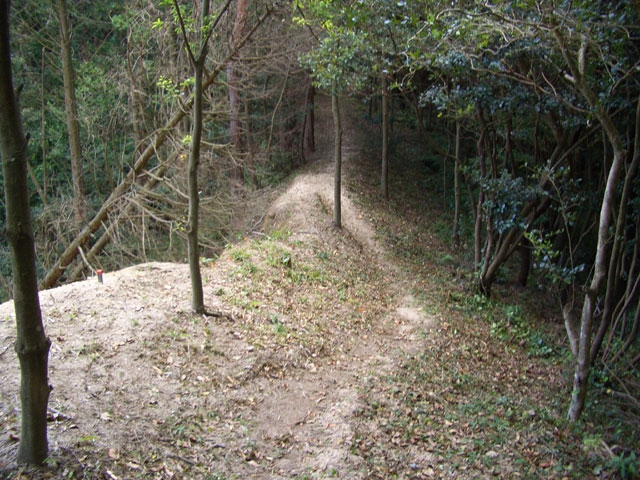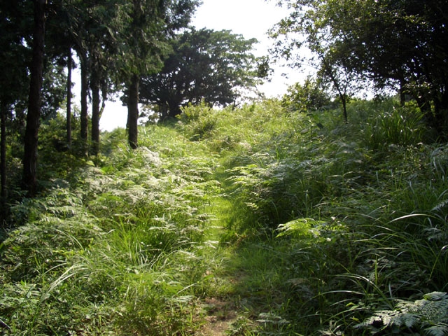 を見て、ほぼ平坦な土塁を行く。