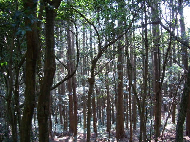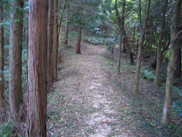 4〜50メートルも行くと、左手にヒノキ林を見てゆるやかに登りはじめる。