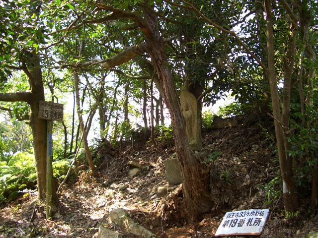 どちらを行ってもいいが、踏み跡がしっかりした左手を少し行くと、右手に19番札所の立て札が立てられ、右手へ分岐している。