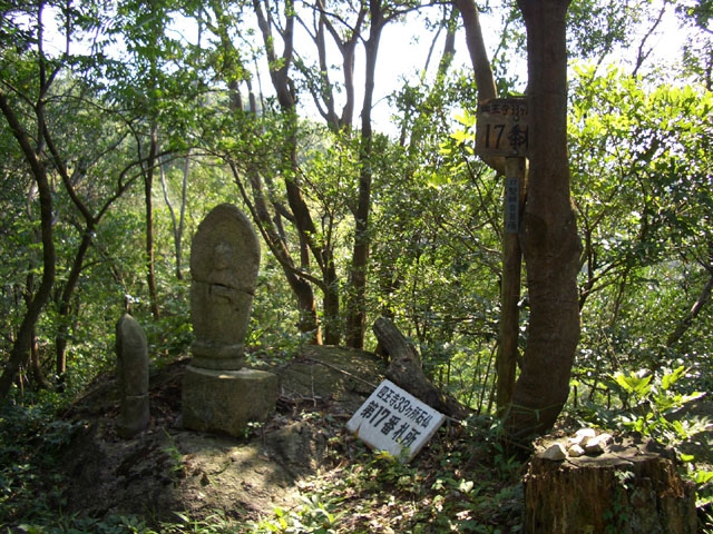 、そして右手は豊富な自然林にの道を、分岐から1分も行くと右手足元に17番札所の立て札が立てられ、右手へ10数メートル行くと