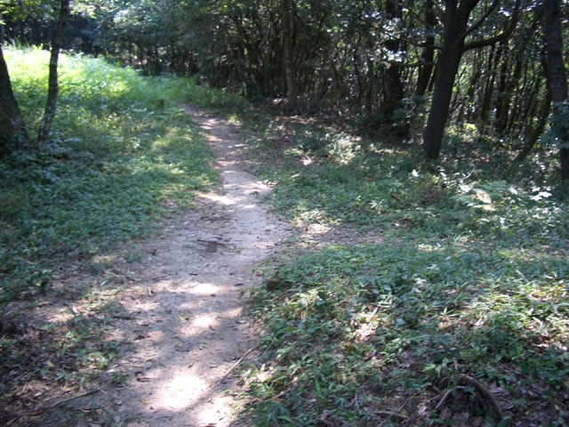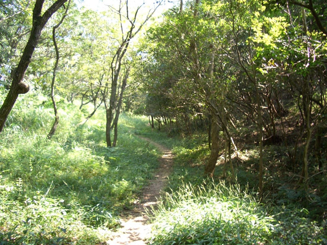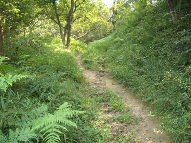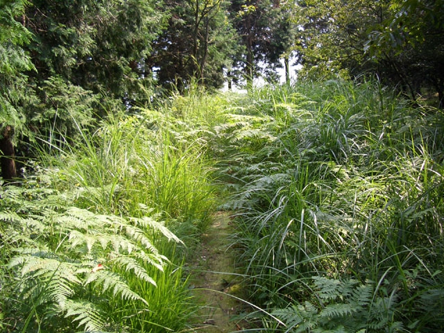 さらに直進して、雑草に隠れるような狭い道を行く。
