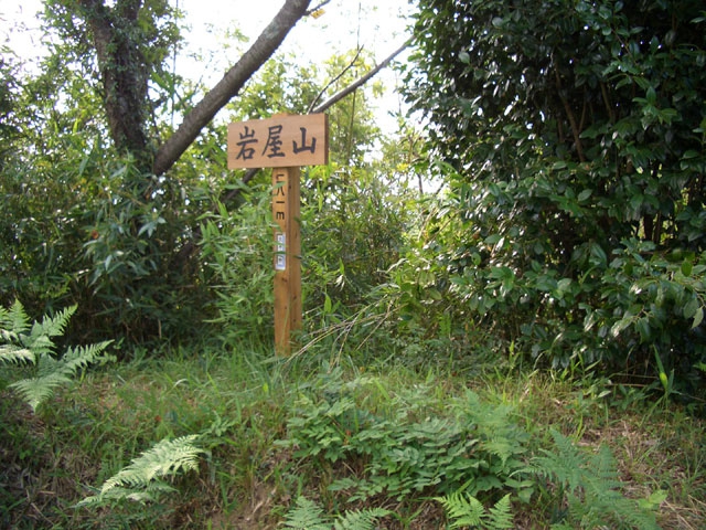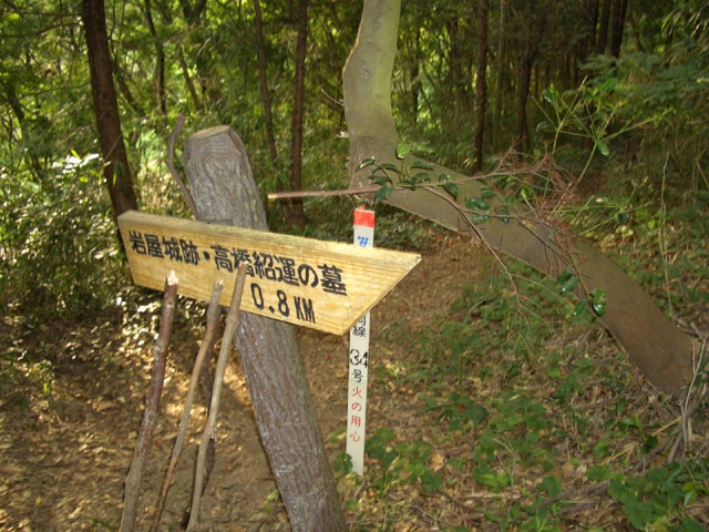 右手には、ここを登る登山者向けに道標が立てられ「岩屋城跡」と案内されている。