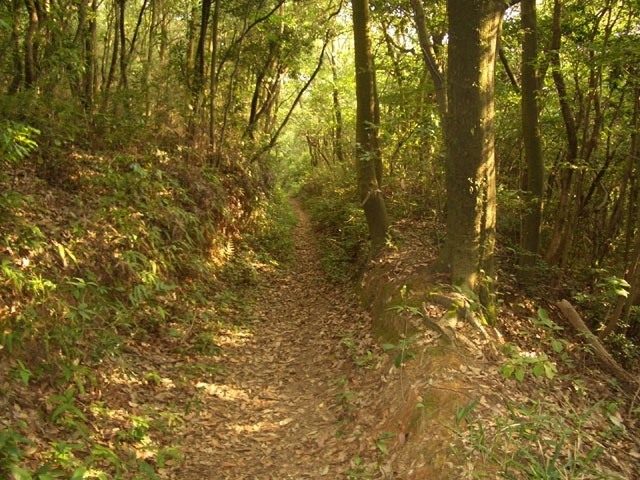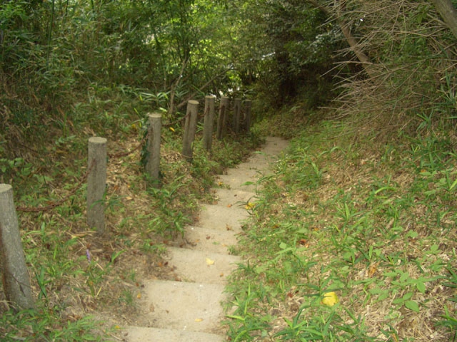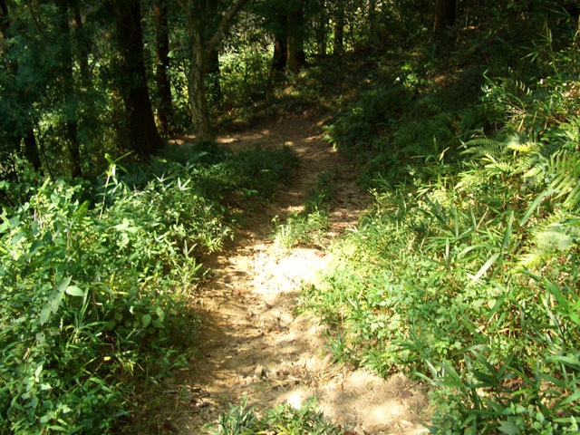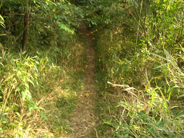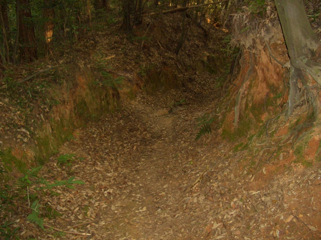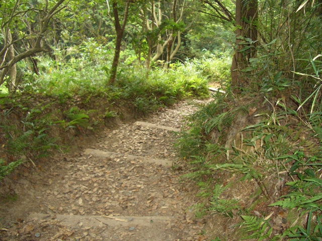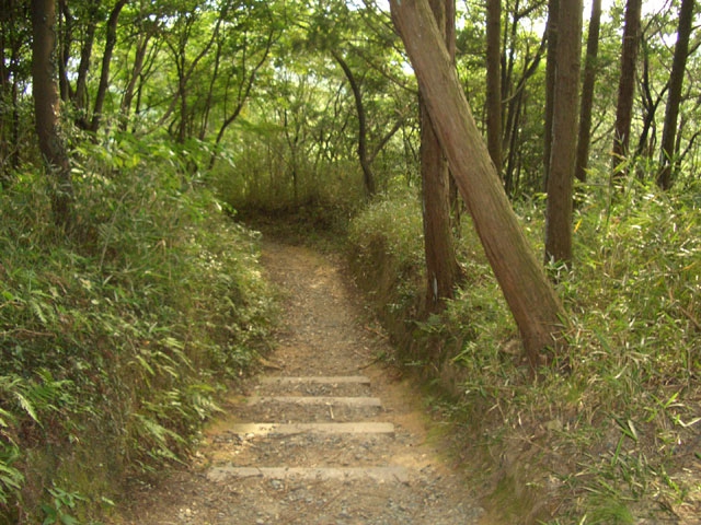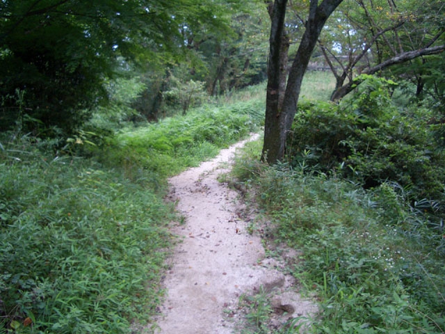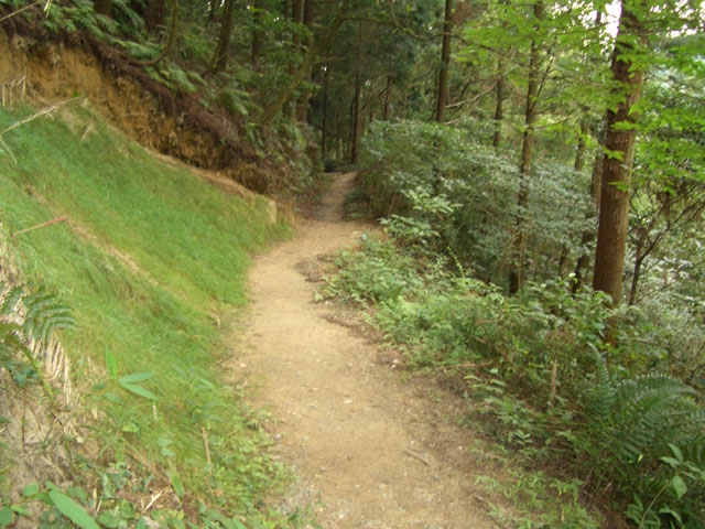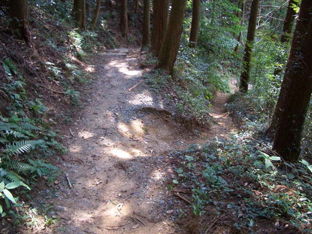 すぐ、右手へ鋭角にカーブしさらに6段ほど下り左手へ鋭角にカーブすると、道は歩きやすくなる。