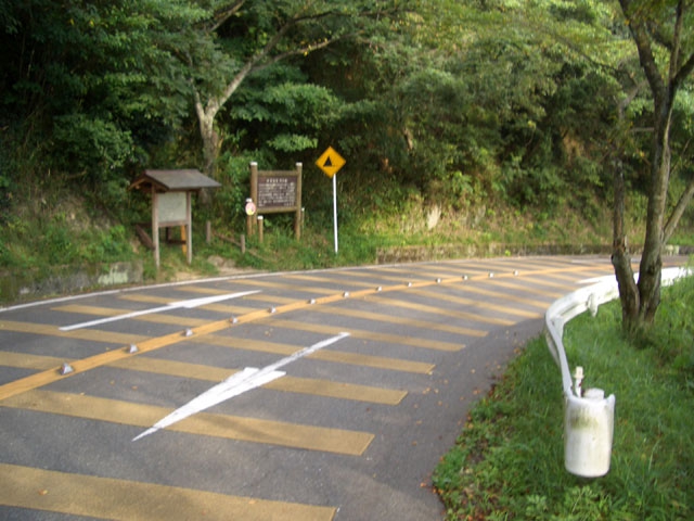 分岐を左折すると、すぐ車道に出会う。
