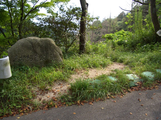 道標には、「岩屋城跡 高橋紹運の墓:0・8km」と案内されている。
