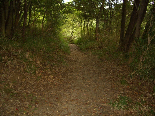 さらに直進して、落ち葉の快適な道をゆるやかに下っていく。