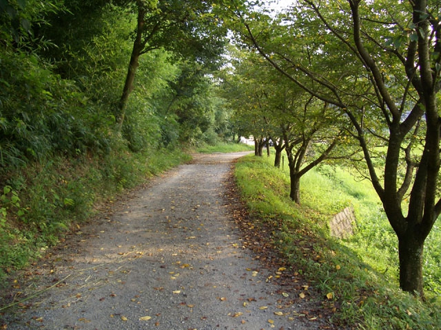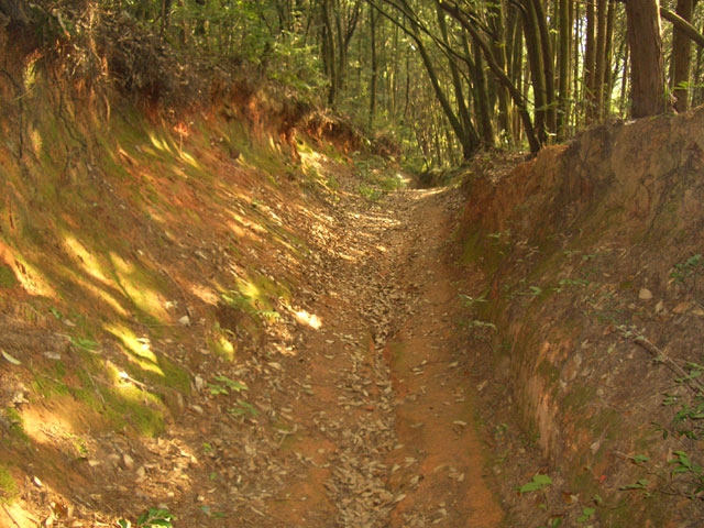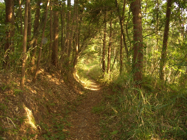少し行くと、道は右手へカーブし10数段下ると、左手から日が差し込んでくる。