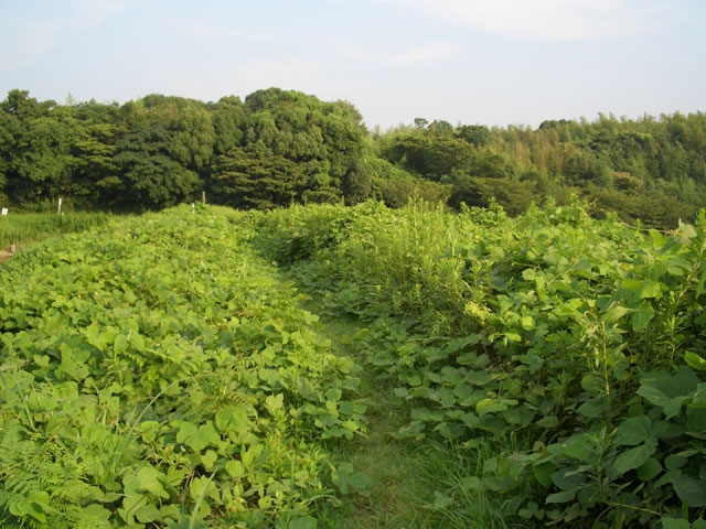 左手には池が現れ、池の縁を伸びる草道を左手へカーブして行く。