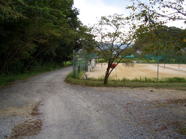 を2分足らず行くと右手にテニスコートを見る。