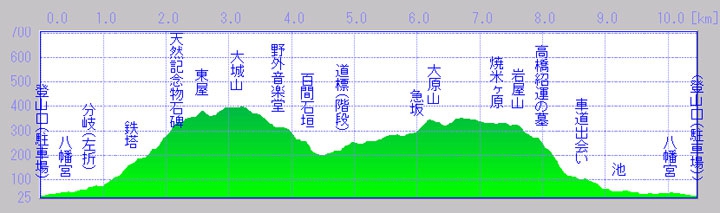 登山道概要図【 高低図・3D概要図 】四王寺山