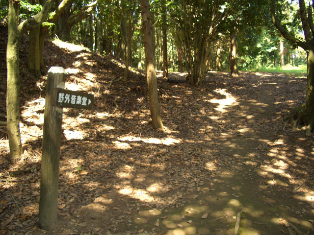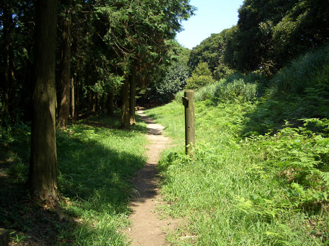 No.49 道は二手に、左手土塁を行けば左手に展望、しかし「入ってはいけませんと」とある