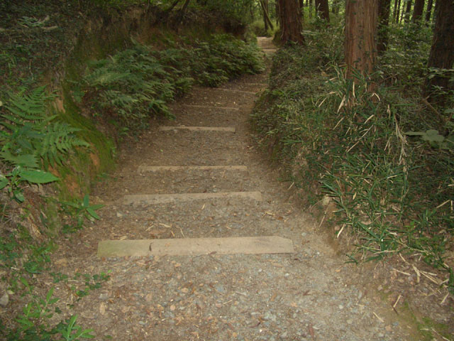 No.54 すぐ車道を横切り九州自然歩道へ木段を登っていく